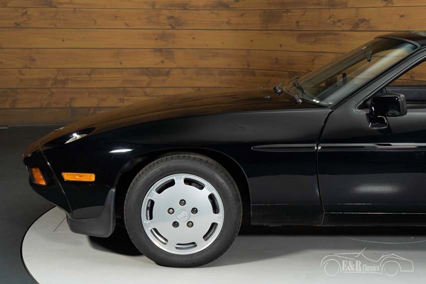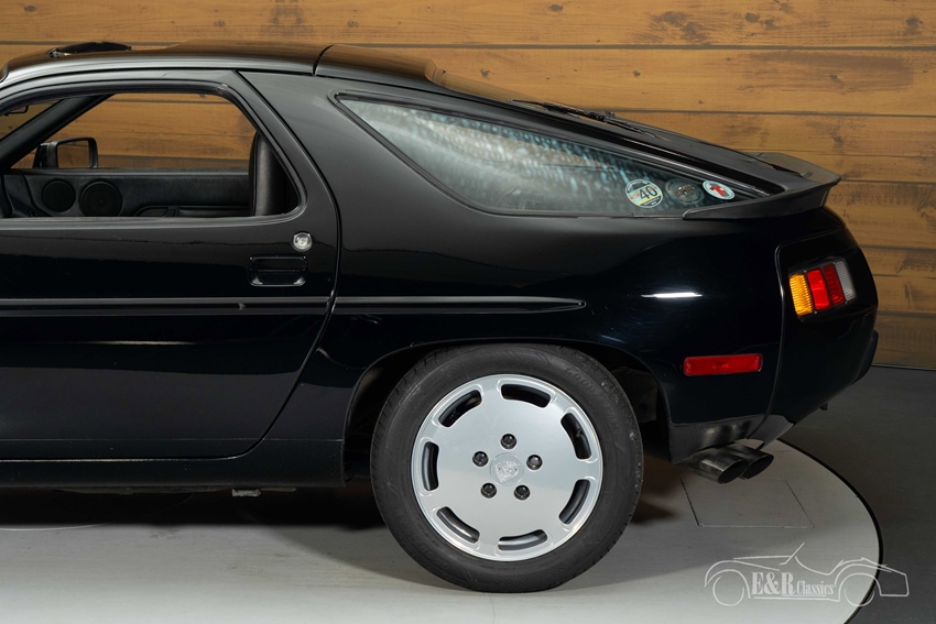 Zwarte Porsche 928 S te koop Ook optisch en qua comfort maakt deze Porsche indruk. Het zwarte lakwerk geeft de auto een tijdloze en krachtige uitstraling en combineert fraai met het zwarte lederen interieur, dat luxe en sportiviteit perfect in balans brengt. De auto is rijk uitgerust met onder meer elektrisch verstelbare stoelen en ramen, climate control, cruise control en een schuifdak, wat het rijcomfort naar een hoog niveau tilt. De originele Porsche-velgen en strakke carrosserielijnen onderstrepen het karakter van deze klassieker: ingetogen, maar onmiskenbaar exclusief. Een 928 S zoals hij bedoeld is, voor de liefhebber die techniek, comfort en design weet te waarderen.