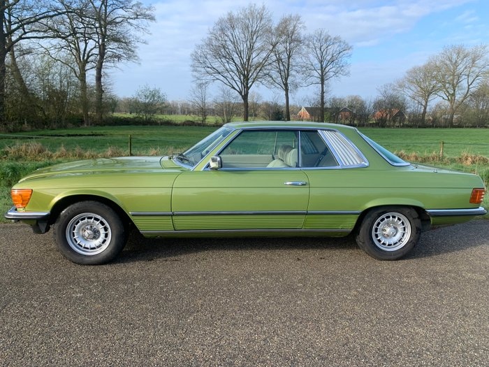 Deze schitterende Mercedes 350 SLC is een heerlijke cruiser, natuurlijk vanwege zijn 3.5 liter V8 motor, en ook vanwege zijn heerlijk schakelende automatische versnellingsbak. Hij is van bouwjaar 1979, in 2004 is hij in Nederland gekomen. De kilometerstand is officieel vanaf 2004 dus aantoonbaar, en de algehele indruk is dat die kilometerstand ook daadwerkelijk klopt, gezien de grote afwezigheid van slijtage aan interieur, stuur enzovoort. Het is nog steeds een prachtige verschijning en een leuke oldtimer geworden, die nog steeds net zoveel aandacht trekt en net zo heerlijk rijdt als toen ie nieuw was. In Nederland moet hij nog 1 keer APK gekeurd worden, en is daarna wegenbelasting vrijgesteld en ook APK vrijgesteld vanwege zijn leeftijd (47 jaar) Carrosserie: Heel erg netjes. De auto ziet er werkelijk prachtig uit, met slechts geringe imperfecties en gebruikerssporen en een paar roestplekjes, ook de onderzijde is erg netjes. Er is altijd goed voor de auto gezorgd, en de auto heeft een wax-oil behandeling gehad. Onderzijde van de deuren is prima, een zwakker punt van de R107 zijn de kriksteunen. Die zijn bij deze auto vrij goed, enige extra aandacht hier is nooit verkeerd. Technisch: De auto start direct, rijdt prima, en de automatische versnellingsbak schakelt zoals het hoort. De ramen zijn handbediend, en werken prima, het bijzondere Mercedes coupe gevoel van een sponningsloze B stijl is hier ook aanwezig, zie de laatste foto's. De auto is verregaand origineel, inclusief een prima werkende Becker Autoradio. De meters op het dashboard werken allemaal, oliedruk is zoals het hoort maximaal bij koude motor, en bij warme motor een stukje lager. Een kleinere onderhoudsbeurt is aan te raden, vanwege het feit dat de auto de laatste tijd amper is gebruikt. Dat geldt voor iedere gebruikte auto, en daarmee ook voor deze Mercedes. Interieur: Het interieur ziet er zeer netjes uit. De stoelen, het dashboard, de achterbank, alle deurpanelen en de dakbekleding eveneens. Geen beschadigingen, iets dat eigenlijk na 47 jaar opmerkelijk is. De hemelbekleding is niet gaan doorhangen. Echt een stukje kwaliteit van Mercedes. Zie de fotos. Documenten: De auto kan tegen meerprijs van 50 euro met Nederlandse EU Export documenten worden geleverd, zodat een eventuele buitenlandse nieuwe eigenaar de auto gemakkelijk in zijn/haar land kan registreren. Een COC / CVO verklaring is ook mogelijk, meerprijs 70 euro. Transport: De auto staat in Hengevelde, Nederland en kan hier vanzelfsprekend worden opgehaald. De auto kan tegen meerprijs van 150 euro binnen Nederland worden bezorgd (excl. De Waddeneilanden) Verkoper kan de auto relatief goedkoop in de hele EU laten bezorgen door een professionele transporteur. Enige informatie over dit model Mercedes: In 1971 lanceerde Mercedes eerst een nieuw tweezits cabrioletmodel en later een vierzits coupéversie op basis van dezelfde auto, met een wielbasis verlengd met 36 centimeter. De Mercedes SLC, met interne code C107, was leverbaar met een scala aan zes- en achtcilindermotoren. Tegenwoordig is het open SL-model misschien wel bekender, niet in de laatste plaats omdat het maar liefst 18 jaar geproduceerd werd, terwijl de SLC Coupé het model is met een autosporthistorie. Onder andere Björn Waldegård reed in 1979 de Safari Rally in een 450 SLC 5.0. Modeljaar 1981 was het laatste model voor de SLC, en zijn opvolger werd een grotere auto omdat hij gebaseerd was op de nieuwe generatie S-Klasse 126. Volgens Mercedes-Benz Journal werden er in totaal 62.888 exemplaren van de SLC geproduceerd