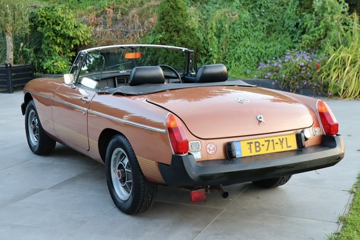 MG B Roadster Limited Edition 1981 - Eén van slechts 420 gebouwde exemplaren (allen voor de Britse markt en RHD) - Volledige historie bekend: vanaf nieuw in familiebezit - Slechts 52.416 mijlen gereden - Overdrive - Nederlandse registratiepapieren aanwezig uit 1988 - Comfortabel interieur met verwarming, middenarmsteun en lederen stuurwiel - Zeer originele conditie, eerste lak! - Technisch goed onderhouden - APK tot 6 februari 2027 HISTORIE Uniek in Nederland: deze MG B Roadster Limited Edition, waarvan slechts 420 exemplaren gebouwd zijn, enkel voor de Britse markt en dus rechts-gestuurd. Het betreft de laatste serie van de MG B die ooit gebouwd is, toen de productie van de MG B eigenlijk al gestopt was. Destijds werd uit geïnteresseerden geloot om eigenaar van een Limited Edition te kunnen worden. De huidige eigenaar van deze auto had zich ingeschreven op een GT (coupé) waar 580 exemplaren van gebouwd werden, maar had geen geluk. Zijn in Engeland wonende broer had meer geluk bij de inschrijving op een roadster en werd eigenaar van dit exemplaar. Na 4 jaar van de auto te hebben genoten is de auto over gegaan naar de huidige eigenaar: een MG verzamelaar in Nederland met al decennia meerdere MG's in zijn bezit. De auto is in 1988 op Nederlands kenteken geregistreerd en is altijd gekoesterd en goed onderhouden. De auto is vooral gebruikt bij toerritten, waardoor de mijlenstand met 52.416 beperkt is gebleven (84.355 km). In tegenstelling tot veel andere exemplaren, is dit exemplaar in zeer originele conditie behouden. Doordat het een laat gebouwd exemplaar is, wordt het als velen beschouwd als de fijnst rijdende MG B. EXTERIEUR Alle 420 gebouwde roadsters zijn origineel uitgevoerd in brons metallic lakwerk met met gouden striping aan de zijkant en oranje stoelbekleding. Een fraaie en retro kleurencombinatie. Dit exemplaar is schade- en roestvrij en bevindt zich zelfs nog in de eerste lak. De rubbers, verlichting en het chroomwerk verkeert in een goede staat. De algehele optische staat is goed met slechts minimale gebruikerssporen. Het het Linker achter scherm heeft aan de onderste rand iets roestvorming, deze is net als de hele onderkant in een beschermlaag gezet (geconserveerd) Kenmerkend voor de latere B modellen zijn de voorspoiler en de populaire 4-spaaks lichtmetalen velgen, die overigens ook nog in goede staat verkeren. Ook de softtop verkeert in goede staat zonder scheuren of beschadigingen, en het sluitwerk functioneert goed. INTERIEUR Een opvallend interieur door de oranje stoelbekleding met bruine strepen, zoals origineel geleverd. Ook het interieur bevindt zich in een originele en goede staat. Dankzij het bouwjaar is hij van comfortabele gemakken voorzien, zoals een middenarmsteun, een stuurwiel dat met leder bekleed is, verwarming en een Pioneer radio/cassettespeler. De vele tellers in het dashboard zijn onder meer een olietemperatuurmeter en een klokje. De gesynchroniseerde 4-versnellingsbak beschikt over een een overdrive, die zorgt voor een prettige ''5e versnelling''. De kofferruimte biedt plaats aan het reservewiel. TECHNISCH Technisch is de MG goed onderhouden en hij start, rijdt en schakelt dan ook uitstekend. De banden rondom zijn zo goed als nieuw en de APK is geldig tot 6 februari 2027. Kortom: een zeer origineel exemplaar van een in Nederland unieke auto!