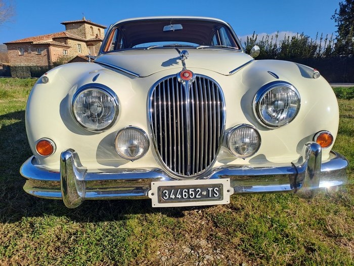De Jaguar MK2 3.4 uit 1960 is een schitterend gerestaureerd exemplaar, in uitstekende esthetische en mechanische staat. De carrosserie en het chassis vertonen minimale ouderdomssporen en verkeren in uitstekende staat. De auto is voor het eerst nieuw geleverd in Zwitserland in 1960 en heeft sindsdien een indrukwekkende en goed gedocumenteerde geschiedenis. Deze Jaguar heeft tussen 1985 en 1989 een volledige restauratie ondergaan in Italiƫ. Na de verkoop in 2011 is hij eigendom geweest van dezelfde persoon, die hem bijna 15 jaar lang met grote precisie heeft onderhouden. Deze auto is uitsluitend gebruikt voor ceremonies, waardoor de controles en keuringen zeer strikt zijn geweest; er zijn door de jaren heen ingrepen gedaan aan het remsysteem en aan het koelsysteem. Deze verbeteringen, in combinatie met uitstekend onderhoud, hebben van deze Jaguar MK2 een van de mooiste rij-ervaringen gemaakt die beschikbaar zijn. De buitenkleur ivoorkleurig is glad en glanzend, zonder zichtbare beschadigingen. Het interieur is uitgevoerd in rood leer en verkeert eveneens in uitzonderlijke staat. Een specialist heeft de auto onlangs onderzocht en bevestigd dat deze MK2 in van goede tot uitstekende staat verkeert: een echte zeldzaamheid. Dit exemplaar wordt vergezeld van uitgebreide documentatie, waaronder gedetailleerde onderhouds- en restauratiefacturen. De volledige geschiedenis van het voertuig is bekend. Vernis & Carrosserie: Zeer goed: minimale chips of krassen, minimale en normale werkzaamheden aan carrosserie en lak. Interieurs: Zeer goed: schoon, beperkte slijtage. Chassis & Sottoscocca: Zeer goed: chassis en onderbouw in goede conserveringsstaat, minimale gebruikssporen en slijtage. Mechanica: Zeer goed: mechanisch gezond, mogelijk minimale onderhoudsbeurt nodig. Algemeen: Zeer goede staat: minimale slijtage.