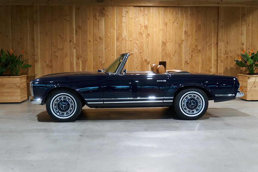 Produced from 1967 to 1971, the Mercedes-Benz 280 SL is a legendary roadster that effortlessly blends timeless design with refined engineering. Nicknamed the “Pagoda” due to its subtly concave hardtop, the 280 SL is the final and most powerful version of the W113 series, succeeding the 230 SL and 250 SL. Under the hood, it features a 2.8-liter inline-six engine producing around 168 horsepower, paired with either a 4-speed automatic or manual transmission, delivering smooth performance with a touch of sportiness. While not a raw sports car, the 280 SL was praised for its balance, comfort, and precise handling. Visually, the car is a masterpiece of understated elegance—clean lines, a wide grille with the iconic Mercedes star, and chrome accents all contribute to its unmistakable charm. Inside, it offers a simple yet luxurious cabin, often trimmed in wood and leather, with an attention to detail that was ahead of its time. Today, the Mercedes-Benz 280 SL remains a sought-after classic, loved by collectors and enthusiasts for its style, reliability, and easy drivability—a true embodiment of mid-century German automotive excellence.