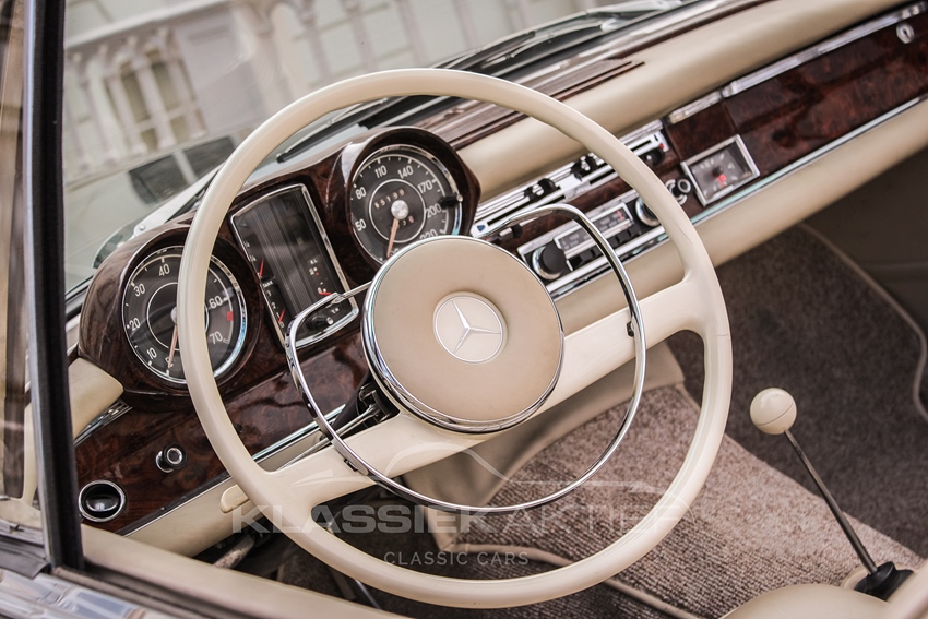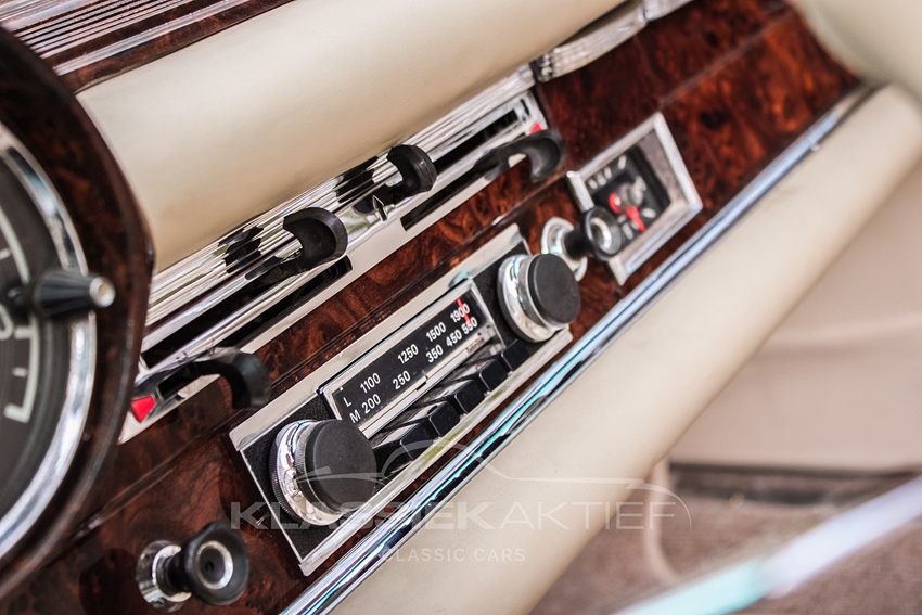 Deze Mercedes-Benz 220 SE Cabriolet is in indrukwekkende en sublieme conditie. Dit is niet alleen van toepassing op de buitenkant of het interieur van de auto. Als we de motorkap openen, zien we een schitterend en bijzonder netjes verzorgde motorruimte. Het is duidelijk zichtbaar, dat deze auto met zeer veel liefde en zorg is onderhouden. Ook de onderkant van de auto laat zien dat de auto veel zorg en liefde heeft ontvangen. En zo rijdt deze auto ongetwijfeld ook. De remmen voelen degelijk en goed aan en deze Mercedes-Benz W111 stuurt bijzonder soepel, mede dankzij de aanwezige stuurbekrachtiging. We overdrijven niet als we zeggen dat hier Mercedes-Benz 220 SE staat in uitzonderlijke nieuwstaat. Niet alleen vanwege de sublieme conditie, maar ook vanwege de perfecte kleurencombinatie.