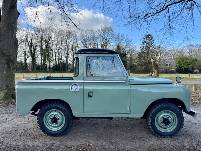 Nette gerestaureerde Landrover Series 88?Pickup Diesel aangeboden. Deze in het verleden gerestaureerde Landrover is in een zeer nette conditie! heeft geen roest en is voorzien van origineel Spaans export kenteken en papieren. Gespoten in de kleur groen met een zwart dak. Het interieur is opnieuw bekleed in Tan brown met lederen voorstoelen, ruim opberg midden console in matching kleur en licht bruin dashboard. De vloermatten zijn van rubber. De laadruimte is onlangs opnieuw bekleed door een timmerman en voorzien van een hardhouten vloer. De Landrover heeft 2 veiligheidsgordels en een reservewiel op de achterklep. Exterieur: Gespoten in licht groen metallic (originele landrover kleur) met piano zwart dak. de originele kleur van deze landrover was Old English White. de wielen zijn in goede staat en in kleur mee gespoten, de banden hebben ruim profiel en alle zilveren details op de auto evenals voorbumper zijn nieuw gespoten. Chassis oogt hard en solide, is eveneens gespoten in zwart. De laadruimte is gebruikt (wat gedeukt) maar wel voorzien van nieuwe rubberen bekleding! het glas van de huif is netjes, voorraam heeft wat krasjes en vegen. De rubbers zijn netjes. Dit is een oudere restauratie, maar de wagen oogt zeer fris en netjes naar leeftijd en gebruik. Interieur: Origineel dashboard, meters en stuur! voorzien van bruin lederen stoelen (nieuw bekleed) en luxe middenconsole. zwart rubberen vloermatten. de binnenkant oogt netjes en verzorgd! dashboard is opnieuw gekleurd in licht bruin. De laadruimte is opnieuw bekleed met hardhout. Motor: Originele 2.3 Diesel motor, deze originele landrover Santana is goed onderhouden, start loopt en schakelt goed. de verlichting werkt naar behoren en is in het verleden allemaal vervangen. Details: Een unieke Series 88 Pickup! de vorige eigenaar heeft deze klassieker met veel liefde gereden, laten onderhouden en verbeterd! hiervoor zijn kosten noch moeite gespaart! Bent u op zoek naar een kwalitatief zeer goede gebruikers off road auto? in een hele frisse en klassieke kleur? Dan is dit zeker een goede en zeer waardevaste investering. De Landrover is in een zeer goede gebruikte conditie en staat garant voor vele zorgeloze kilometers. Heeft u interesse en wilt u deze klassieke Landrover te komen bekijken en een uitgebreide proefrit maken? dit is mogelijk! U bent van harte welkom, neem hiervoor contact met ons op via Catawiki. Inclusief: – Spaanse papieren – Technische check – rubberen laadvloer matten nieuw - Reservewiel Transport: Wij verzorgen in samenwerking met enkele transporteurs transporten door heel Europa en daarbuiten! heeft u interesse om deze Landrover te laten bezorgen bij u thuis? neem dan contact met ons op via Catawiki en wij maken voor u een passende offerte. Bieden: Wij adviseren u altijd de klassieker te komen bekijken alvorens te bieden. Deze advertentie is met grote zorg samengesteld, zet en drukfouten voorbehouden. Voor meer informatie, detail fotos of een korte film van de klassieker kunt u contact opnemen met Catawiki. De Landrover staat in Meppel, Nederland
