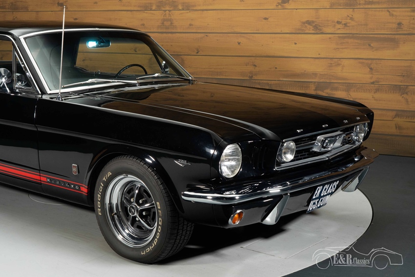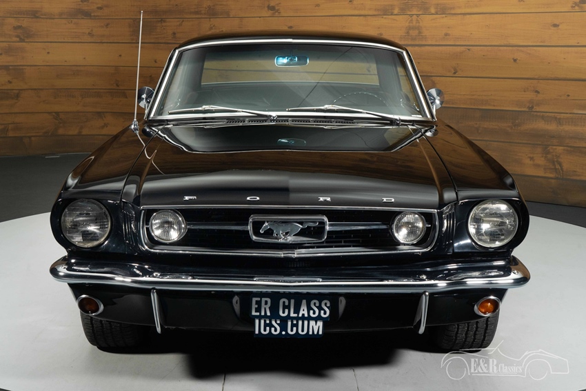 Ford Mustang Coupe met GT-Look te koop Het exterieur is uitgevoerd in stijlvol zwart lakwerk, wat perfect aansluit bij de sportieve GT-look van deze Mustang. Details zoals de karakteristieke grille, accenten en velgen versterken het klassieke maar krachtige uiterlijk. Het zwarte interieur vormt een mooi geheel met de buitenzijde en straalt tijdloze klasse uit. De middenconsole zorgt voor extra comfort en een luxere uitstraling in het interieur, terwijl het dashboard en de afwerking typerend zijn voor de jaren '60 Mustang-beleving. Deze combinatie van kleurstelling en uitvoering maakt het geheel bijzonder aantrekkelijk voor liefhebbers van originele, maar stijlvol uitgevoerde Amerikaanse klassiekers.
