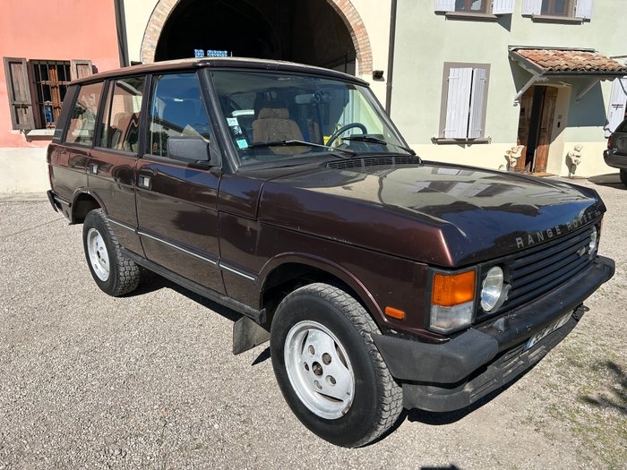 OVERZICHT/VOORWAARDEN Range Rover Classic 3.9 V8 die eenvoudig te restaureren is De carrosserie bevindt zich in de oorspronkelijke lak en is nooit gerestaureerd, dus vertoont tekenen en defecten door de tijd; het dak is afgebladderd en de achterklep is gere rust. Er zal een vervangende achterklep bij geleverd worden. De motor start, en de auto kan verplaatst worden, maar heeft een algemeen onderhoud nodig voordat hij weer op de weg kan. De automatische versnellingsbak werkt normaal, maar een schoonmaakbeurt en olieverversing dienen gepland te worden. De uitlaat moet vervangen worden. De ABS-pomp werkt niet en de remmen moeten nagekeken worden. Het interieur en de bekleding verkeren in goede staat, het hemelbekleed is losgeraakt. Het elektrische systeem werkt, net als de elektrische ramen en het elektrisch bedienbare schuifdak. Het chassis verkeert in goede staat, maar de carrosserie vertoont doorslagende roest aan de binnenkant van de linker wielkast en in de onderste dorpels. DOCUMENTATIE Bijbehorende documenten in het Frans. Te zien en uit te proberen in Parma, Italiƫ.