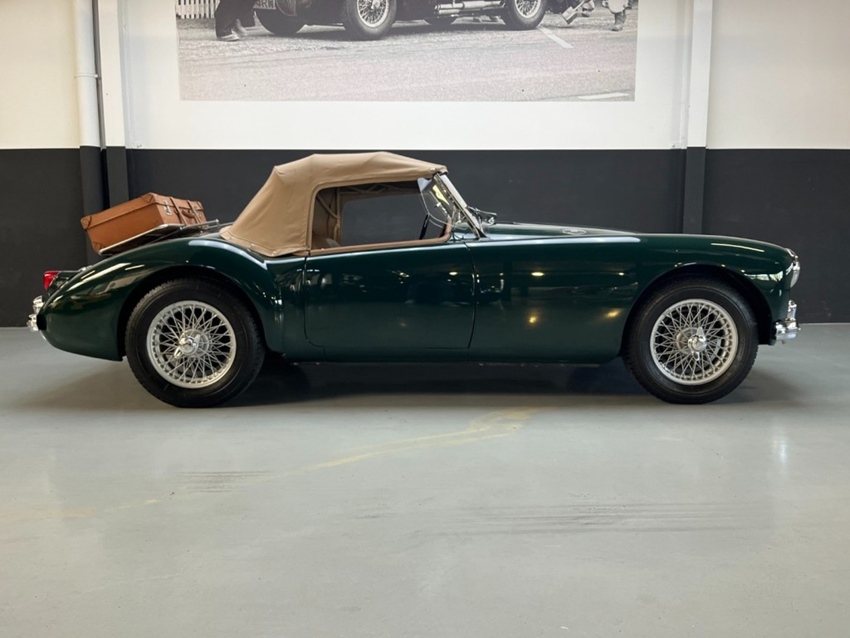 Uitgevoerd in British Racing Green met een cognac kleurig volledig lederen interieur, biedt deze MGA een tijdloze en bijzonder geslaagde kleurcombinatie. Het diepe groen van de carrosserie vormt een mooi contrast met de warme tinten van het interieur en geeft de auto een klassieke en uitnodigende uitstraling.