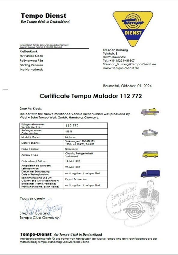 Wow, wat een beauty. Wat moeten dat mooie tijden geweest zijn. Met een 30 pk camper Europa induiken, zonder stress, geen angst. Prachtig. Alleen al het ontwerp zoals een camper als deze, zo ontzettend mooi! Zijn camper carrosserie compleet uit aluminium opgebouwd, dat prachtige matador snoetje, heerlijk. Dit is toch wel een heel bijzondere auto. Dat was het destijds al, maar nu echt 1 van de zeldzaamste voertuigen ter wereld. Er is ooit begonnen aan de restauratie door hem alvast deels te demonteren, maar zoals je ziet is dit nooit voltooid. De basis is echt heel goed, nagenoeg geen roest en zo goed als compleet. Vrij eenvoudig restauratie project. Zweedse papieren aanwezig.
