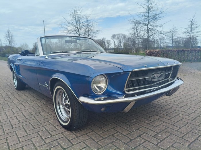 1967 Ford Mustang V8 289 - C Code - Convertible Deze Mustang betreft een originele V8 (C Code), af fabriek geleverd met de 289 V8 motor en een automatische transmissie. Een eerlijke en authentieke klassieker met een sterke basis. Algemene informatie: Te koop aangeboden: een 1967 Ford Mustang V8 met een hele interessante kleurstelling in een prachtige uitvoering met de juiste opties. Deze Mustang verkeert in goede staat en is door de vorige eigenaar gebruik voor uitstapjes om heerlijk te genieten. De auto is bijna 15 jaar in het bezit geweest van de laatste eigenaar en heeft daarvoor in Californië rond gereden (Title is nog bij de auto en andere documenten van voorheen) Dit is een kans om een echte V8 Mustang Convertible te bemachtigen met behoud van karakter en authenticiteit. - Automatische transmissie - Stuurbekrachtiging - Styled Steel met white walls - Powertop - Center console - Duits kenteken Carrosserie & Lakwerk: De carrosserie is strak, recht en grotendeels origineel, met een mooie, eerlijke patina die perfect past bij de leeftijd van de auto. Het blauwe lakwerk toont lichte gebruikssporen, wat bijdraagt aan de authentieke uitstraling. Technisch: Voorzien van de welbekende 289 V8, die soepel loopt en krachtig presteert. De automatische transmissie schakelt zoals het hoort. Deze Mustang biedt de pure Amerikaanse rijbeleving: comfortabel cruisen met het herkenbare diepe V8-geluid. Goed onderhouden en rijklaar. De Cabriokap werkt prima zoals het hoort Interieur: Net en verzorgd interieur, volledig passend bij het originele karakter van de auto. Stoelen, deurpanelen en interieurdetails verkeren in mooie staat en dragen bij aan de authentieke uitstraling. Documentatie: - Duits kentekenbewijs - EU-registratiepapieren aanwezig Afhaling / Transport: De auto bevindt zich in Appingedam en kan daar na aankoop worden afgehaald. Transport is mogelijk in overleg. Samenvatting: Een originele California-built 1967 Ford Mustang Convertible met een goede carrosserie en authentieke uitstraling. Reeds voorzien van Duits/EU kenteken en daarmee instap klaar voor de Europese markt. Een zeldzame en karaktervolle V8 Mustang voor de liefhebber.