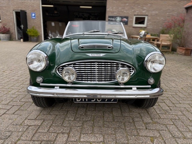 Prachtige, gerestaureerde Austin-Healey 100/6 BN4. De Healey met de meest pure rondingen en lijnen. Deze zeer nette Healey is gerestaureerd in het verleden en nog steeds in zeer nette conditie. De restauratie is ongeveer 20 jaar geleden gedaan, van deze restauratie zijn er vele foto's voorhanden waaruit blijkt dat alles gedaan is, body off. De techniek is destijds ook allemaal onder handen genomen uiteraard, dus ook de 2600 motor en side shift overdrive versnellingsbak. De auto is na restauratie wat jaren bereden en zeer goed onderhouden. De auto is voorzien van een Heritage certificate. Deze Healey was nieuw geleverd in New York en is al sinds 1993 in Nederland. De auto is gespoten in British Racing Green met Old English White zijflanken.