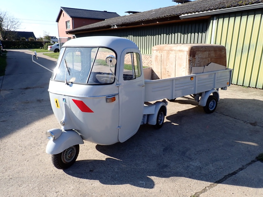 For sale is this lovely APE Pentaro Faro Basso, built in 1963 by Piaggio. Ape means Bee in italian and is the 3-wheel version from the Vespa which means wasp in italian. Pentaro comes from the Greek Penta which means 5 and Ro from Ruote, Italian for wheels. So here is your chance to buy an extremely rare Pentaro vehicle. After spending its working life in Ventimiglia in the Italian riviera it was restored before we bought it. The Pentaro is in running condition as can be seen on our youtube channel but needs some work to be fully operational.