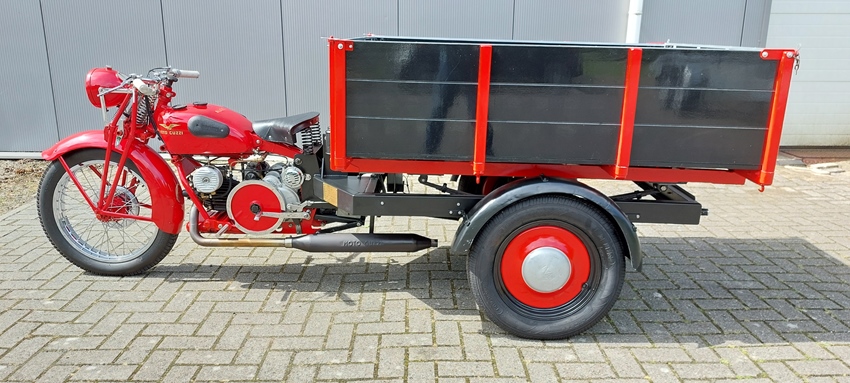 Prachtige en historische moto guzzi, een bijzonderheid op de weg. Geschiedenis is bekend. Deze guzzi kan geleverd worden met trailer.