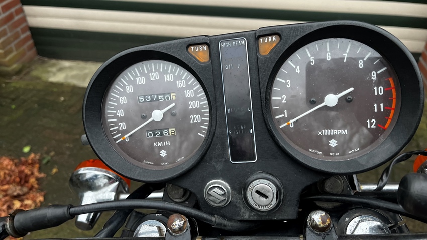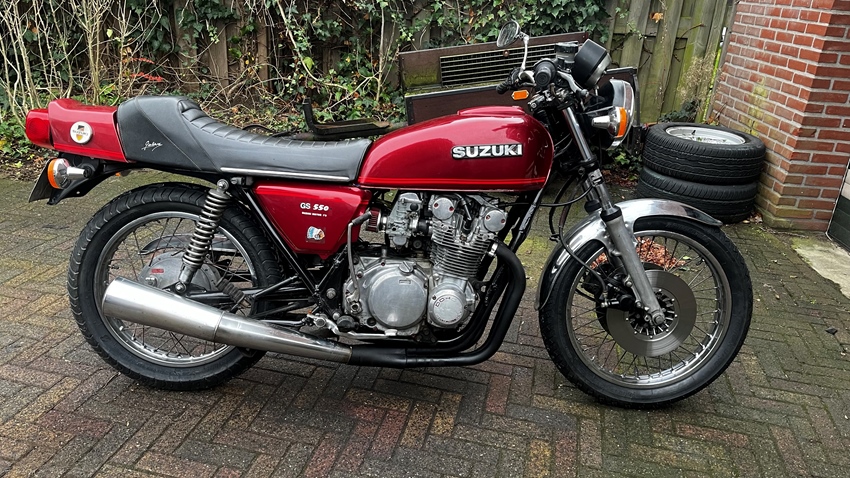 Een Suzuki GS550 bouwjaar 1978. Het eerste jaar van dit type. Dit is ook het enigste jaar dat ze gebouwd zijn met spaakwielen, latere jaren hebben gietwielen. motor loopt,rijd en remt zoals je van een oldtimer kunt verwachten. heeft hier en daar een plekje maar het is geen nieuwe. Is voorzien van nieuwe banden voor en achter, bougie's als ook de lampjes van het dashboard. de gearindicator werkt. het orginele luchtfilter is ook aanwezig.