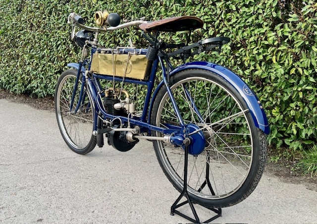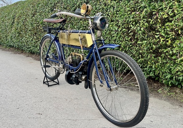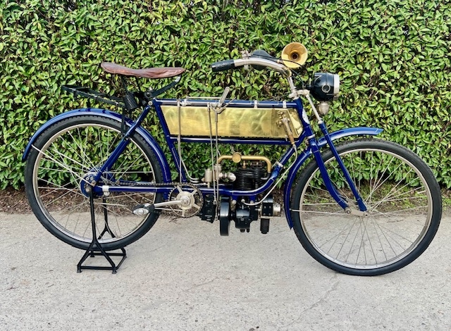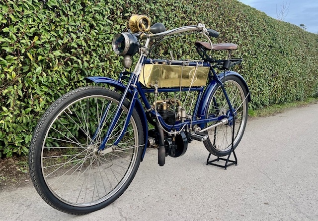 FN model 274. Dit is een 247cc van 1909, 2 versnellingen met kardan aandrijving. Oudere restauratie.