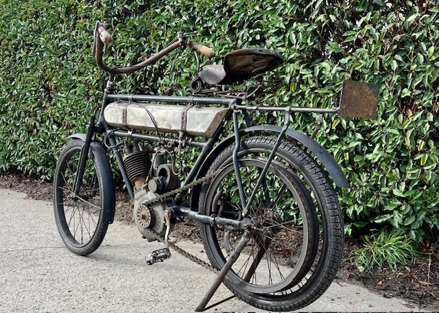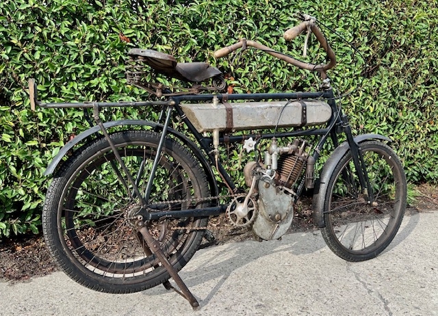 Deze Magnat Debon 500cc kopklepper racer is zo een zeldzame vroege racer van 1912. Eerste versie met de kleine platte tank, in 1913 kwam de grotere ronde tank. Motorfiets is compleet en motor zit los en heeft compressie. Standaard werden ze geleverd met dit straatversie stuur en bagagerek omdat vele straat racen in Frankrijk moesten gereden worden met een gewone stratversie motorfiets. Maar velen werden omgebouwd met een race stuur. Deze motorfiets heeft ook de speciale race uitlaat met extra klep die men kan open zetten.