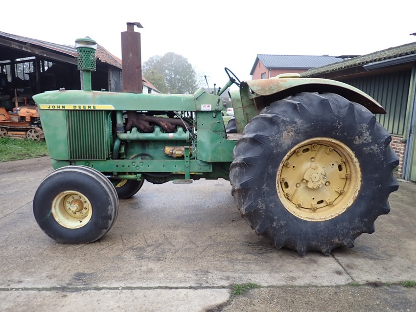 For sale is this 1965 John Deere 5010 diesel tractor. The tractor is in running and driving condition as can be seen on our you tube channel. Doesn't shift into low gear for the moment. The tractor is equipped with the famous 8.7 litre 6 cylinder engine coupled to an 8 speed forward 2 reverse syncro range gearbox. It is equipped with 3 point linkage and has the heavy 1000 pounds wheel weights inside the rear wheels. With the big round fenders covering the 24.5-32 tires and the fat front rubber it could become the pride and joy in any John Deere tractor collection.
