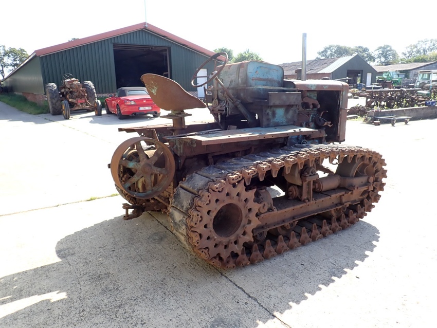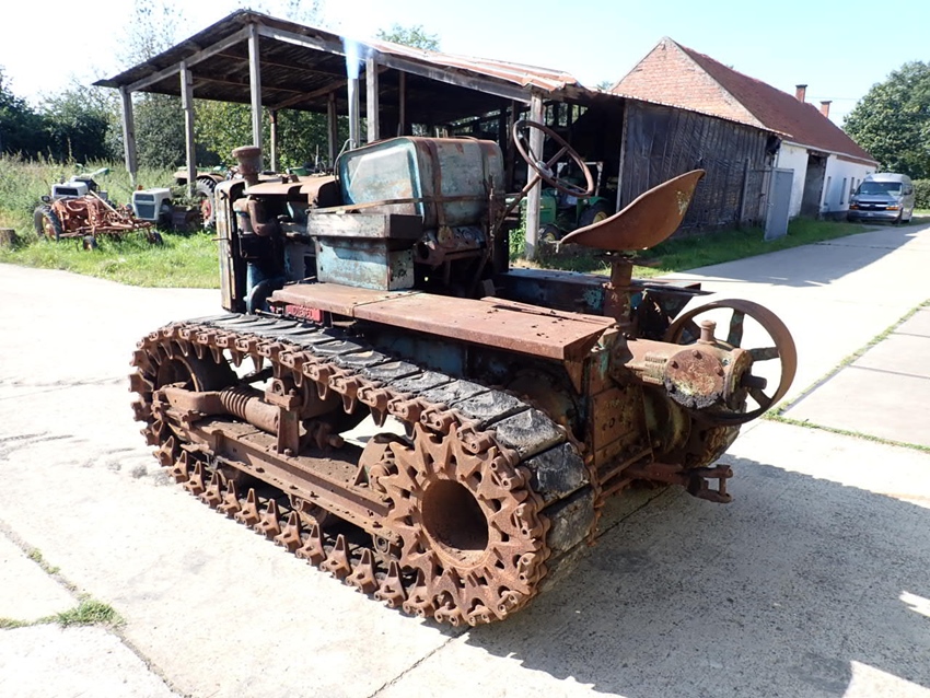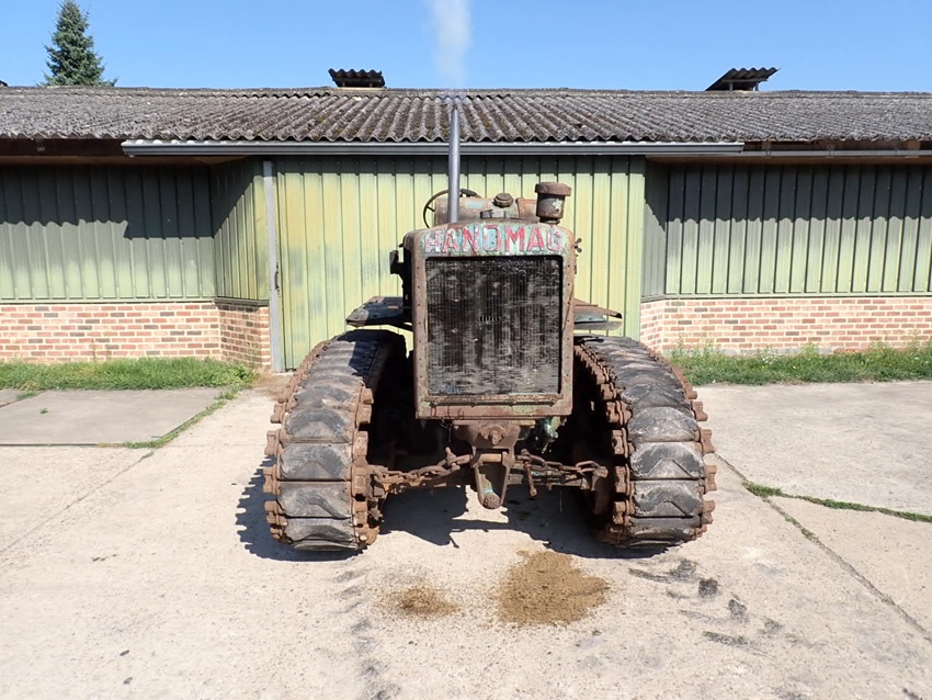 For sale is this Hanomag K50. Equipped with the Hanomag 5.2 litre 4 cylinder and 50 HP diesel engine, this tractor is in good running condition, as can be seen on our Youtube channel, where it runs after remaining in covered storage for decades. The crawlers and steering brakes are functional. It has the rare big pulley as a very desirable option.