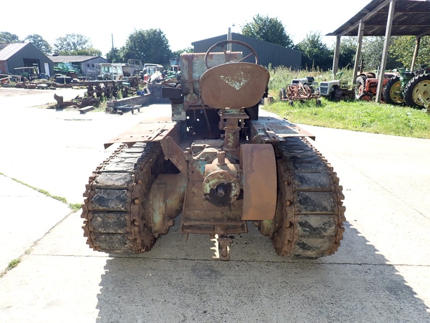 For sale is this Hanomag K50. Equipped with the Hanomag 5.2 litre 4 cylinder and 50 HP diesel engine, this tractor is in good running condition, as can be seen on our Youtube channel, where it runs after remaining in covered storage for decades. The crawlers and steering brakes are functional. It has the rare big pulley as a very desirable option.