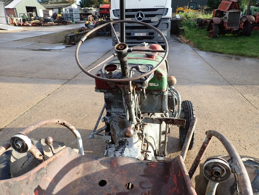 Steyr 80S Vineyard tractor, ca 1953 built, in decent running condition, see video. This is indeed a very rare tractor as only 367 examples were built over the total 12 year production run from 1951 till 1963. With its 15 Hp single cylinder diesel engine and 3-point linkage it will be a real show-stopper once restored and will be the pride and joy of every Steyr or Vineyard collector.