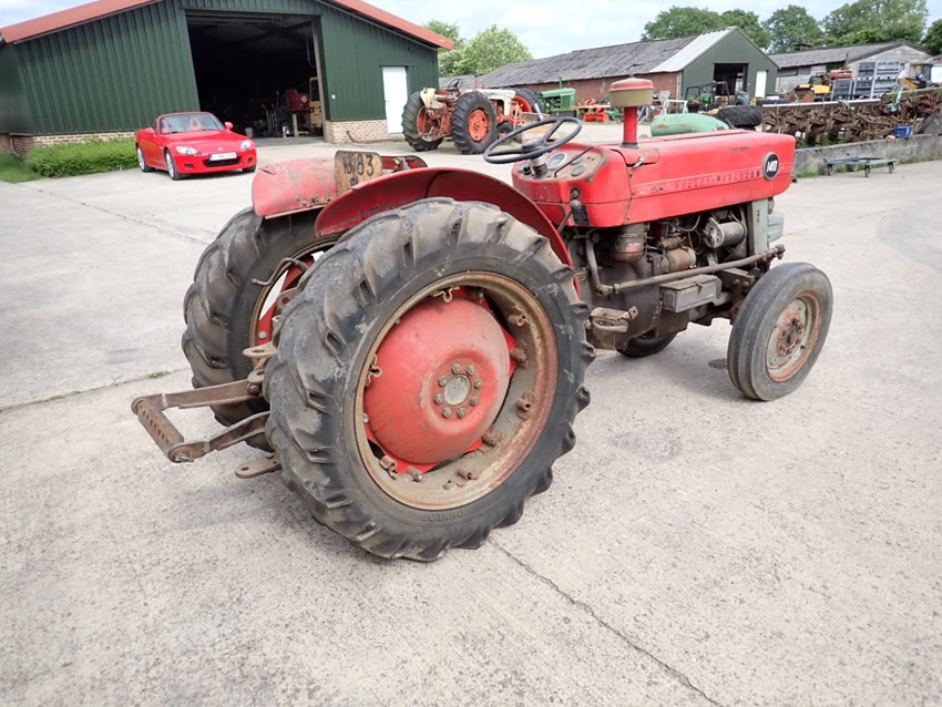 For sale is this nice original 1970's Massey-Ferguson MF 140 Vineyard tractor, with its original Perkins 2.5 litre 3 cylinder diesel engine delivering 43 HP to its 6 speed forward, 2 reverse gearbox and very nice sheet metal. The tractor is in good running condition as can be seen on our you tube channel.