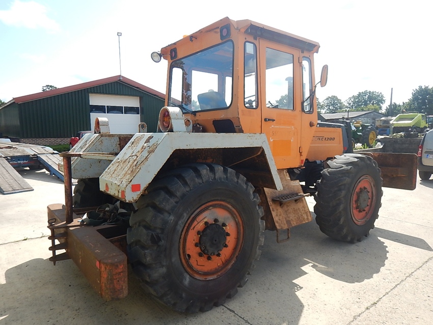 For sale is this very early Mercedes MB Trac 1300 towing tractor, built in 1978. One of very few built, with torque converter and heavy 12 ton axles, original out of the Mercedes factory options, in original and running and driving condition as can be seen on our Youtube channel. Very heavy tractor with massive mudguards and massive pushing blade, built to push and pull loads in the Antwerp harbour up to 200 tonnes. Price is exclusive VAT.