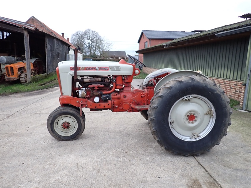 Fors sale is this 1959 Ford 971, the Select-O-speed from the 901 series tractors, in good running and driving condition. Powershift works well in both forward as reverse as can be seen in the video. Ford was way ahead of its time as they built the first full powershift tractor with 10 forward and 2 reverse speeds in 1959 at a moment its main competitors could only shift down half a gear. John Deere followed the Ford example in 1962 and International waited almost 25 years to have a full powershift tractor. This 1959 tractor would be a perfect addition for any tractor collection.
