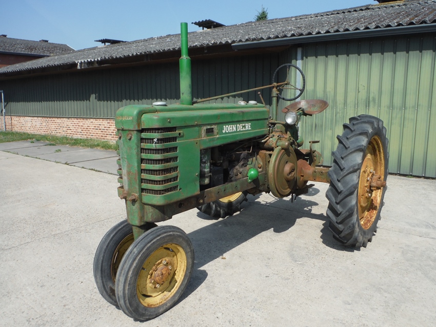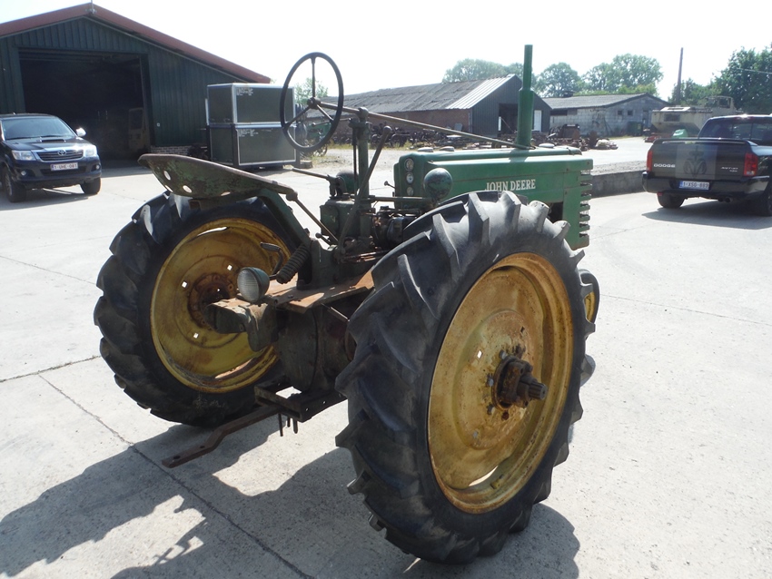 For sale is this ca 1945 John Deere H in good running and driving condition, as can be seen in the video. It has the rare and desirable electric start and hydraulics options. The H was the smallest row crop tractor in the line-up, pulled a single bottom plow and weighed only around 950kg. It was tested at 14.84 belt HP.