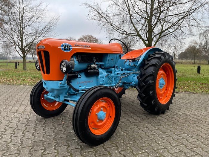 Lamborghini model 2R van 1966, gebouwd met in totaal zeer weinig exemplaren. De Lamborghini 2R tractor was een van de meest succesvolle modellen van het bedrijf. Dit betreft ook nog eens het dubbel zitter model! (2 zadels). Tractor is in 2020 gerestaureerd door een bedrijf dat gespecialiseerd is in Lamborghini restauraties met uitstekende afwerkingen. Rifinito in blauw en oranje originele kleurstelling en aangedreven door een luchtgekoelde dieselmotor met drie cilinders van 2.193 cc, gekoppeld aan een handgeschakelde drieversnellingsbak met dubbele gangen en een achteras met portaal. De bedieningselementen bestaan uit een handmatige gaspedaal, een versnellingspook, een kracht-inrichtingselecteur, een koppelpedaal en onafhankelijke rempedalen voor de achterwielen. Achteraandrijfas, semi-achteruitrijlichten, voorlichten, achterlichten en achteruitrijlichten. De remkracht wordt verzekerd door achterremmen met trommelremmen. Een drie-spaaks stuurwiel is geplaatst voor een verchroomd dashboard dat een oliedrukmeter en een omgekeerde schaal tachometer met Lamborghini Cento-merk herbergt. De driecilinder dieselmotor van 2.193 cc, luchtgekoeld, is uitgerust met mechanische Bosch-injectie. Gerestaureerd alleen met originele onderdelen. Nieuw elektrisch systeem, verlichting, accu, dynamo. Gewicht 1350 kg Dit model heeft een koppeling van 22,5 cm, dezelfde maat die Ferruccio Lamborghini op zijn Ferrari had gemonteerd, wat aanleiding was tot discussies tussen Ferruccio Lamborghini en Enzo Ferrari. De perfecte kroon voor elke collectie. Zeer goede waarde stijgende investering. Tot in detail gerestaureerd! Transport mogelijk.
