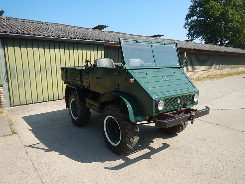 Introducing this classic 1964 Mercedes Unimog 411, a highly sought-after truck or tractor for collectors and enthusiasts alike. This particular model comes with Belgian documents and is suitable for drivers with a small drivers license. Despite its age, this Unimog is in excellent running condition thanks to a previous restoration. Don't miss out on the chance to own a piece of automotive history with this impressive Mercedes Unimog 411.