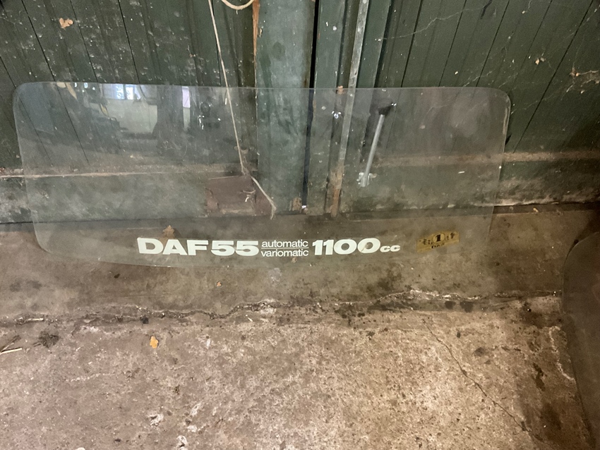 Daf 55 2 deuren eentje zonder ruit, kleine beschadiging, kofferbakdeksel,voorruit, achterruit, 2 zijruiten.